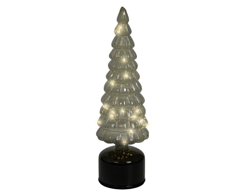 ALBERO VETRO VERDE MICRO LED LUCE CALDA H34CM