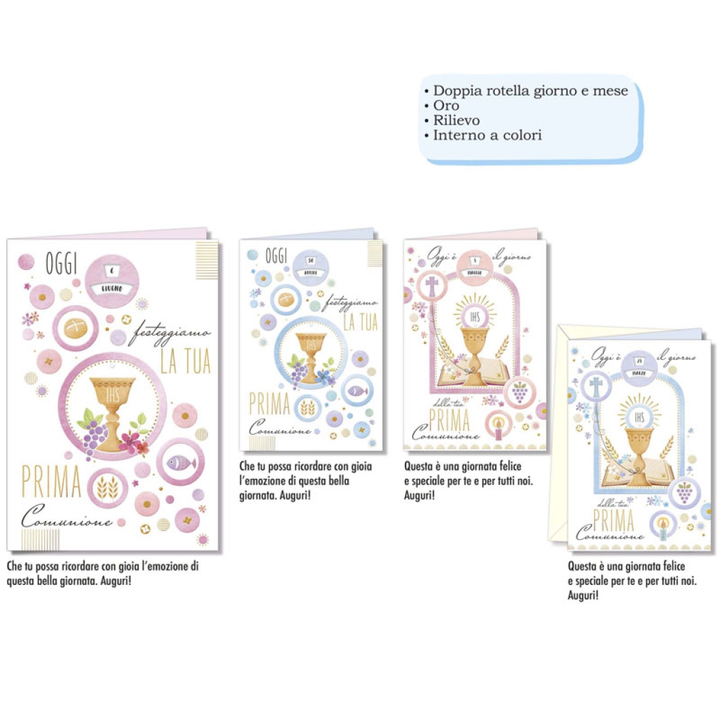 BIGLIETTI AUGURI 12PZ 13X18 COMUNIONE ROTELLA G/M: vendita all’ingrosso a prezzi competitivi con consegna veloce by Bocchio srl