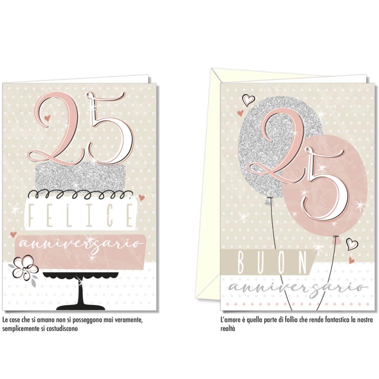 BIGLIETTI AUGURI 12PZ ANNIVERSARIO 25°: vendita all’ingrosso a prezzi competitivi con consegna veloce by Bocchio srl