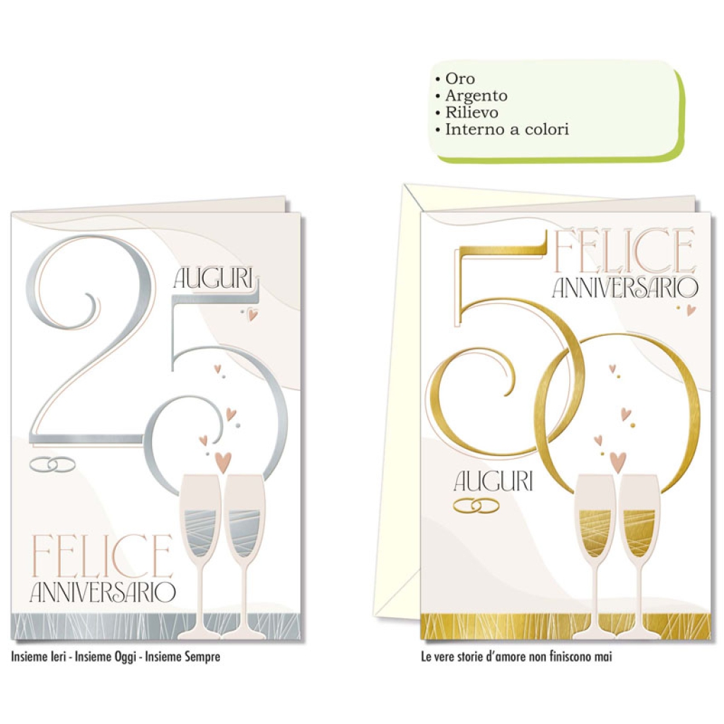 BIGLIETTI AUGURI 12PZ ANNIVERSARIO 25° E 50°: vendita all’ingrosso a prezzi competitivi con consegna veloce by Bocchio srl