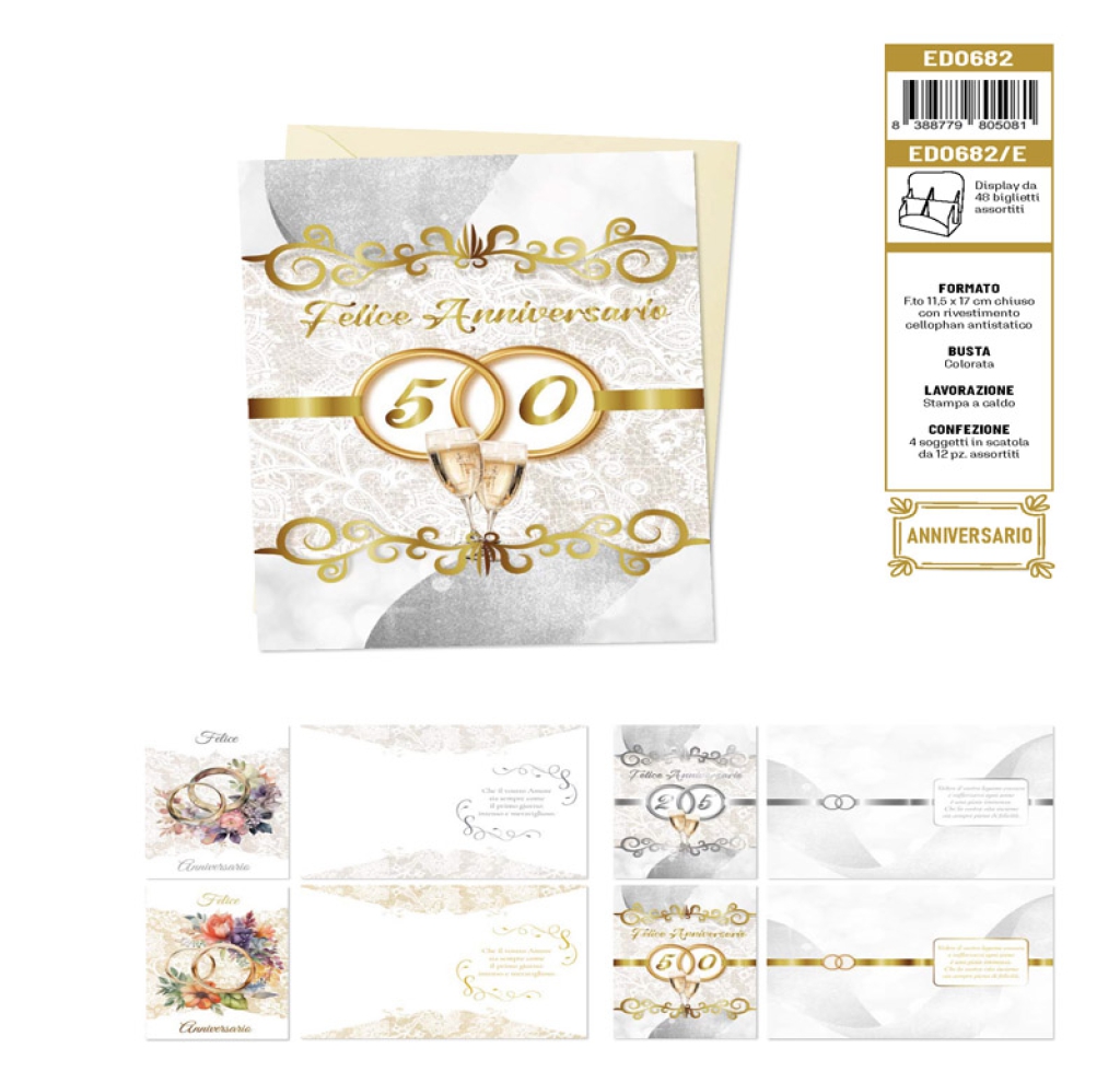 BIGLIETTI AUGURI 12PZ ANNIVERSARIO: vendita all’ingrosso a prezzi competitivi con consegna veloce by Bocchio srl
