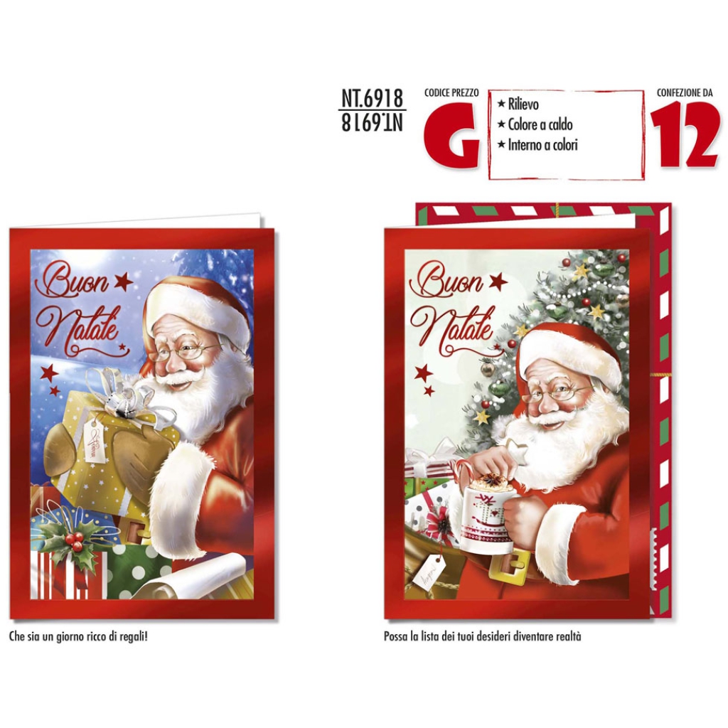 BIGLIETTI AUGURI 12PZ BABBO NATALE 11,5X17CM