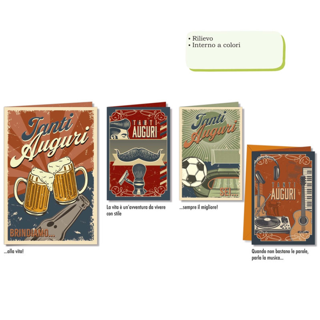 BIGLIETTI AUGURI 12PZ COMPLEANNO UOMO VINTAGE: vendita all’ingrosso a prezzi competitivi con consegna veloce by Bocchio srl