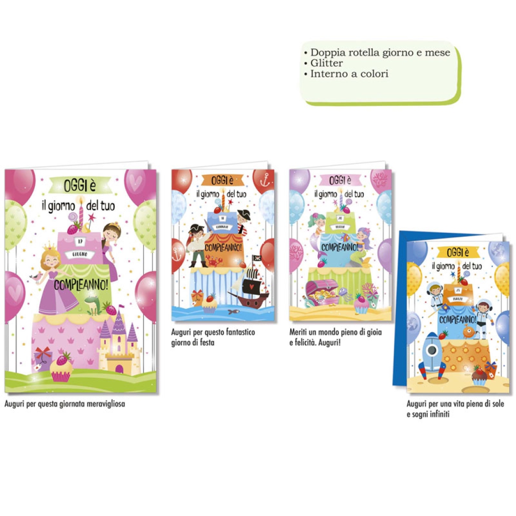 BIGLIETTI AUGURI 12PZ CON ROTELLA GG/MESE BIMBI: vendita all’ingrosso a prezzi competitivi con consegna veloce by Bocchio srl