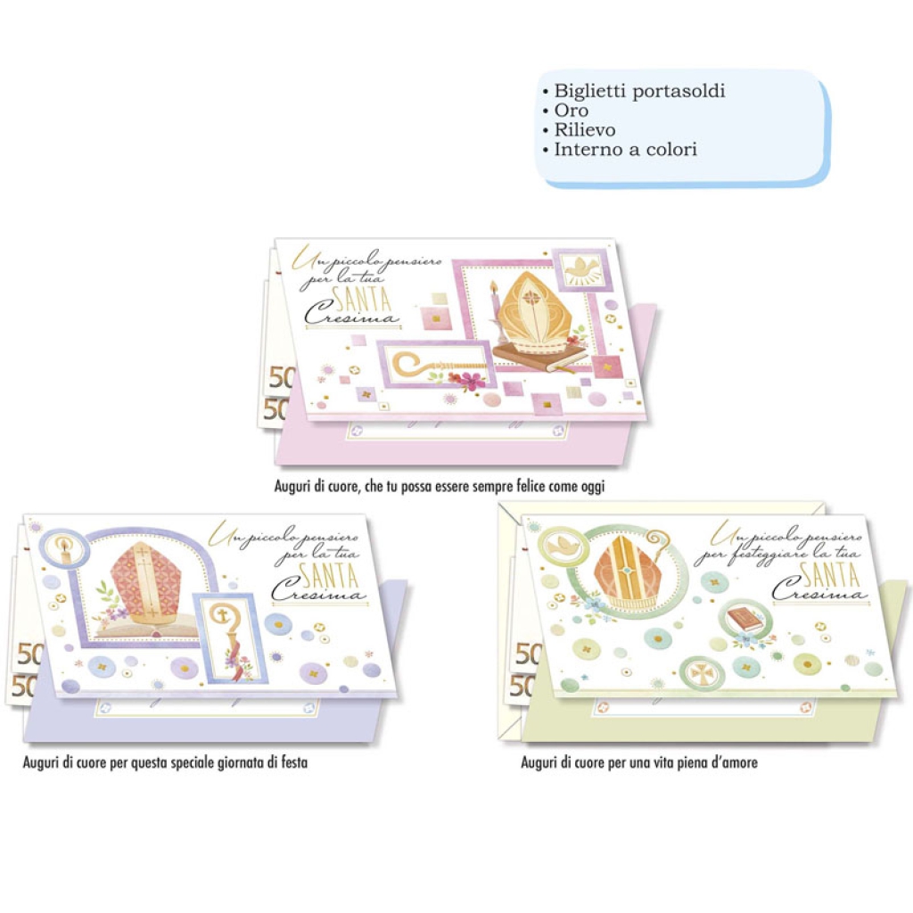 BIGLIETTI AUGURI 12PZ CRESIMA PORTASOLDI: vendita all’ingrosso a prezzi competitivi con consegna veloce by Bocchio srl