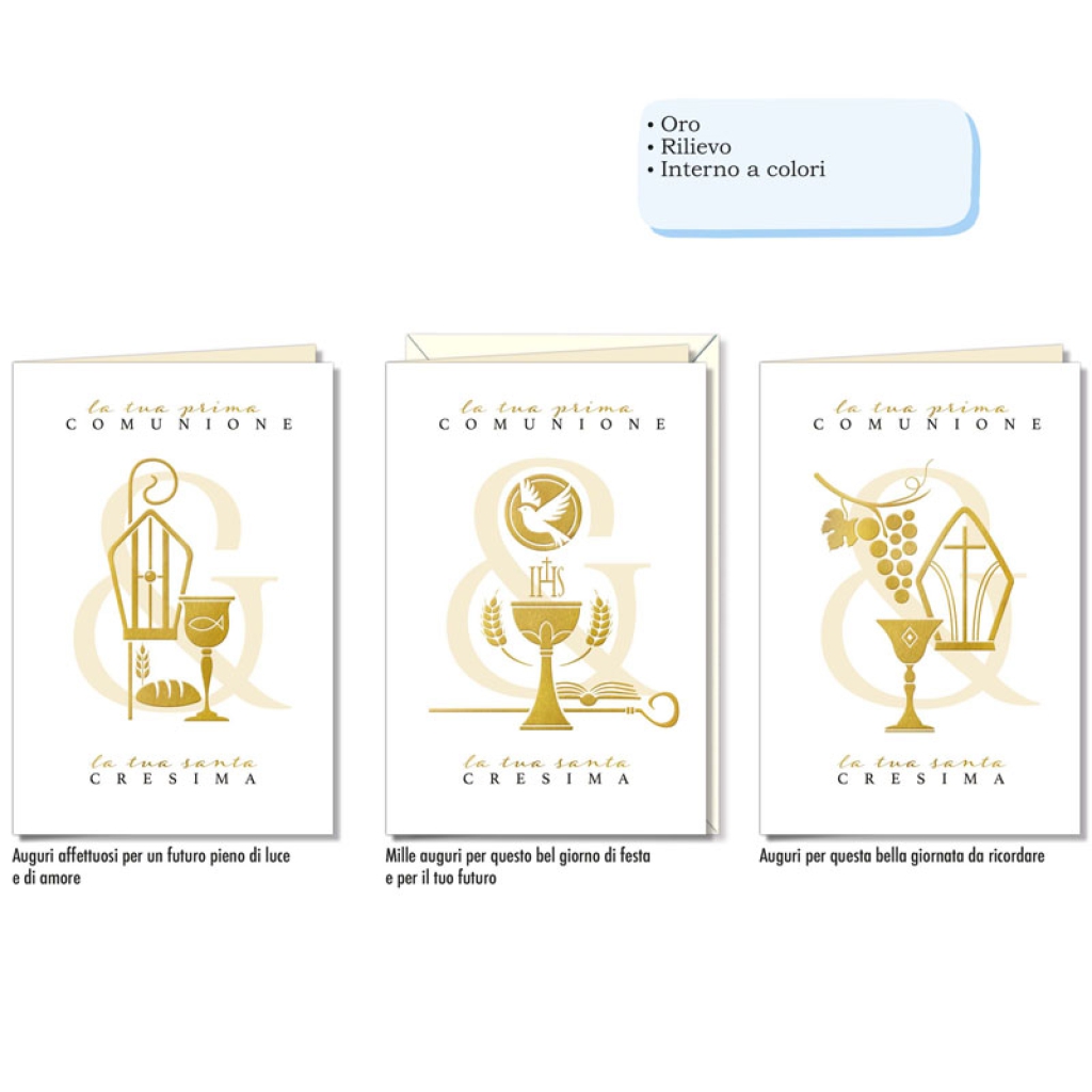 BIGLIETTI AUGURI 12PZ ORO COMUNIONE E CRESIMA: vendita all’ingrosso a prezzi competitivi con consegna veloce by Bocchio srl
