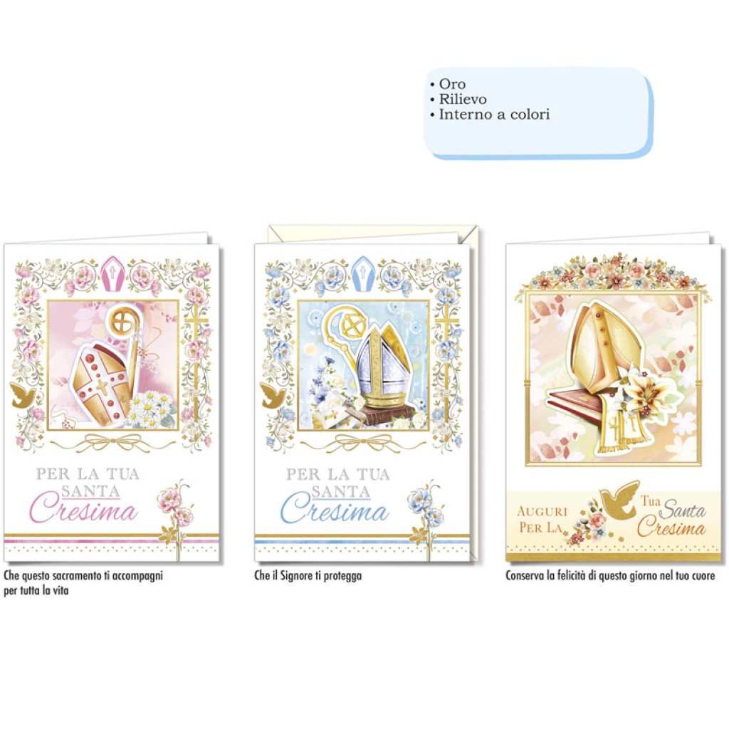 BIGLIETTI AUGURI 12PZ ORO IN RILIEVO CRESIMA: vendita all’ingrosso a prezzi competitivi con consegna veloce by Bocchio srl