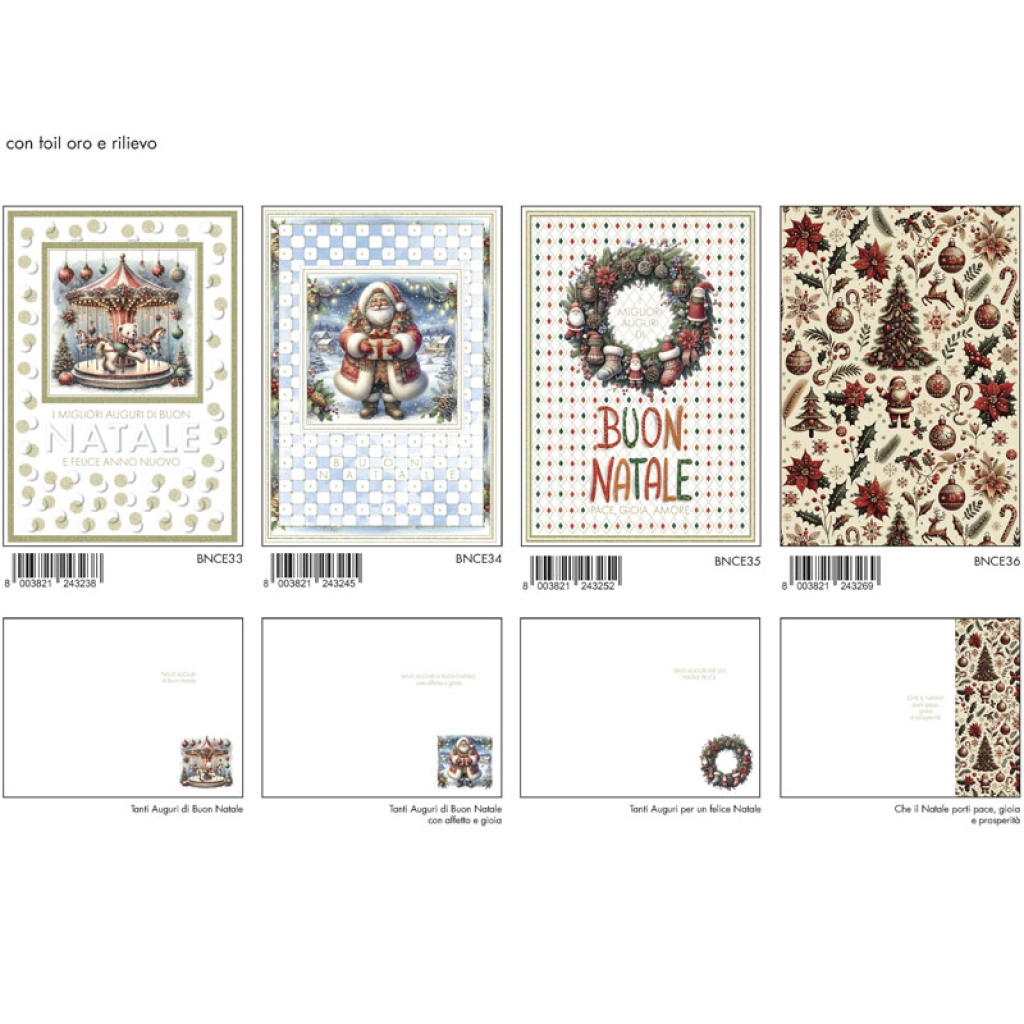 BIGLIETTI AUGURI 12PZ XMAS FOIL ORO RILIEVO
