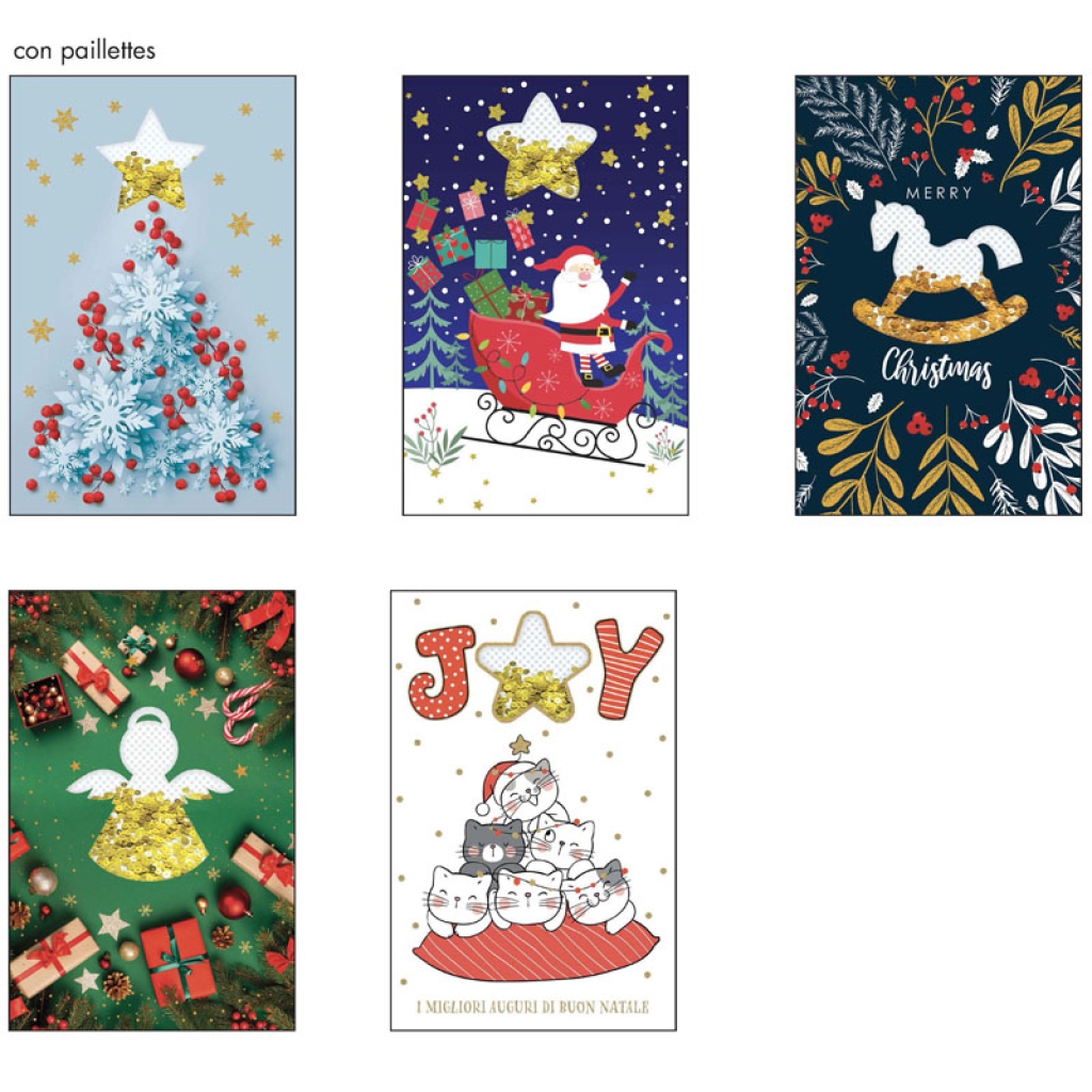 BIGLIETTI AUGURI 12PZ XMAS PAILLETES: vendita all’ingrosso a prezzi competitivi con consegna veloce by Bocchio srl