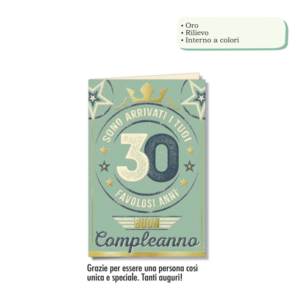 BIGLIETTI AUGURI 6PZ 30 ANNI ORO RILIEVO VINTAGE: vendita all’ingrosso a prezzi competitivi con consegna veloce by Bocchio srl