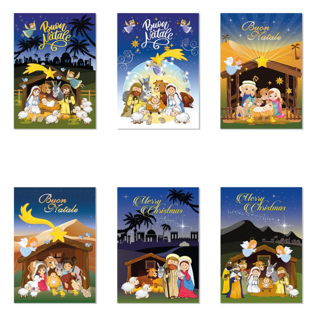 BIGLIETTI NATALE 12PZ DISEGNI NATIVITA' 12X17CM: vendita all’ingrosso a prezzi competitivi con consegna veloce by Bocchio srl