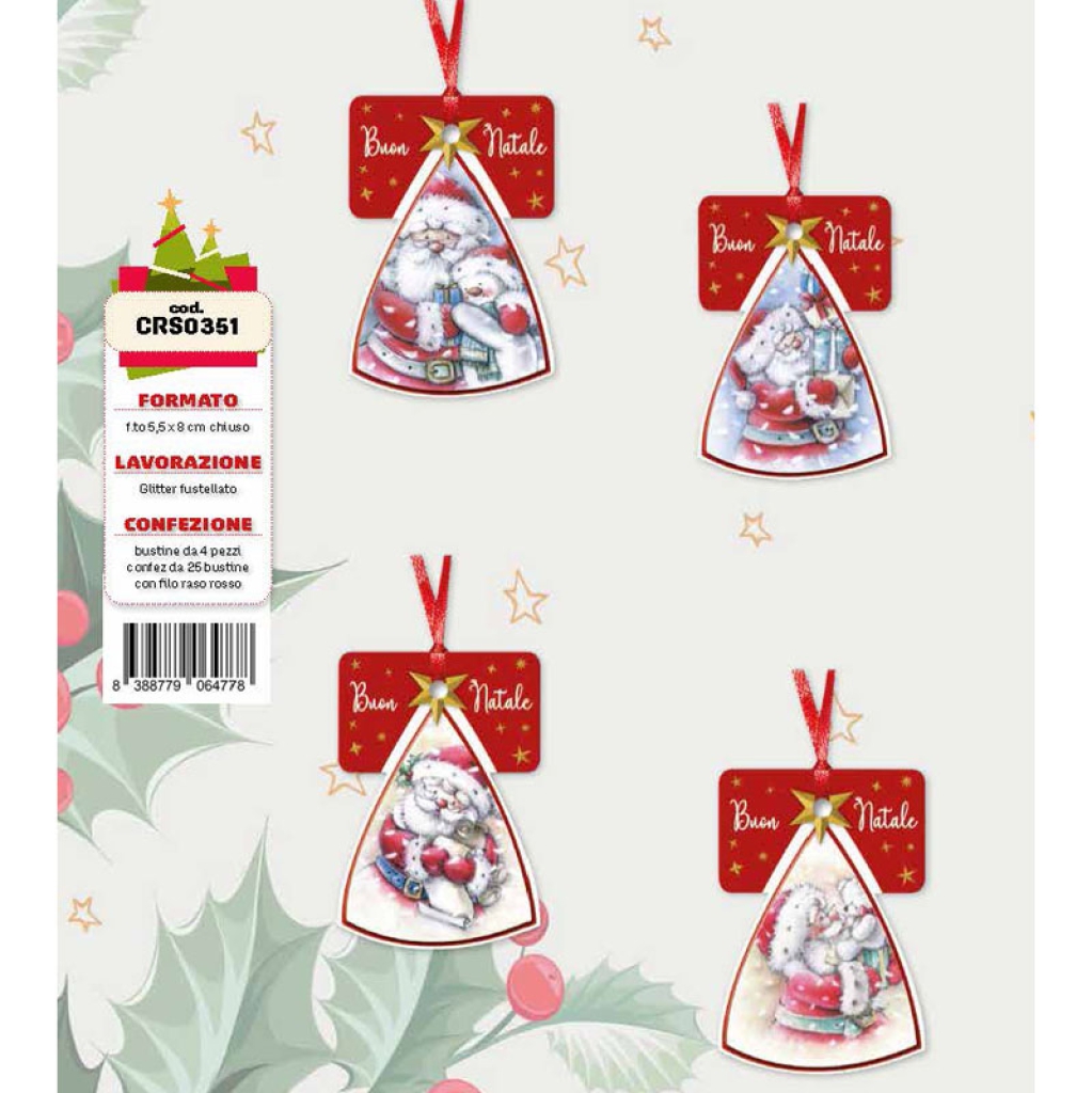 BIGLIETTI XMAS 25PZ CHIUDIPACCO 5,5X8CM GLITTER: vendita all’ingrosso a prezzi competitivi con consegna veloce by Bocchio srl