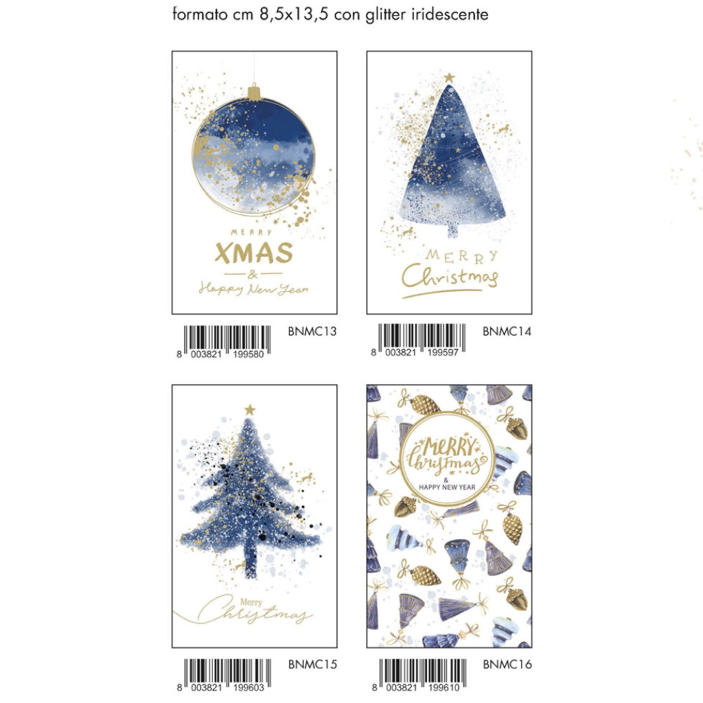 BIGLIETTI XMAS 8,5X13,5 60PZ C/GLITTER: vendita all’ingrosso a prezzi competitivi con consegna veloce by Bocchio srl