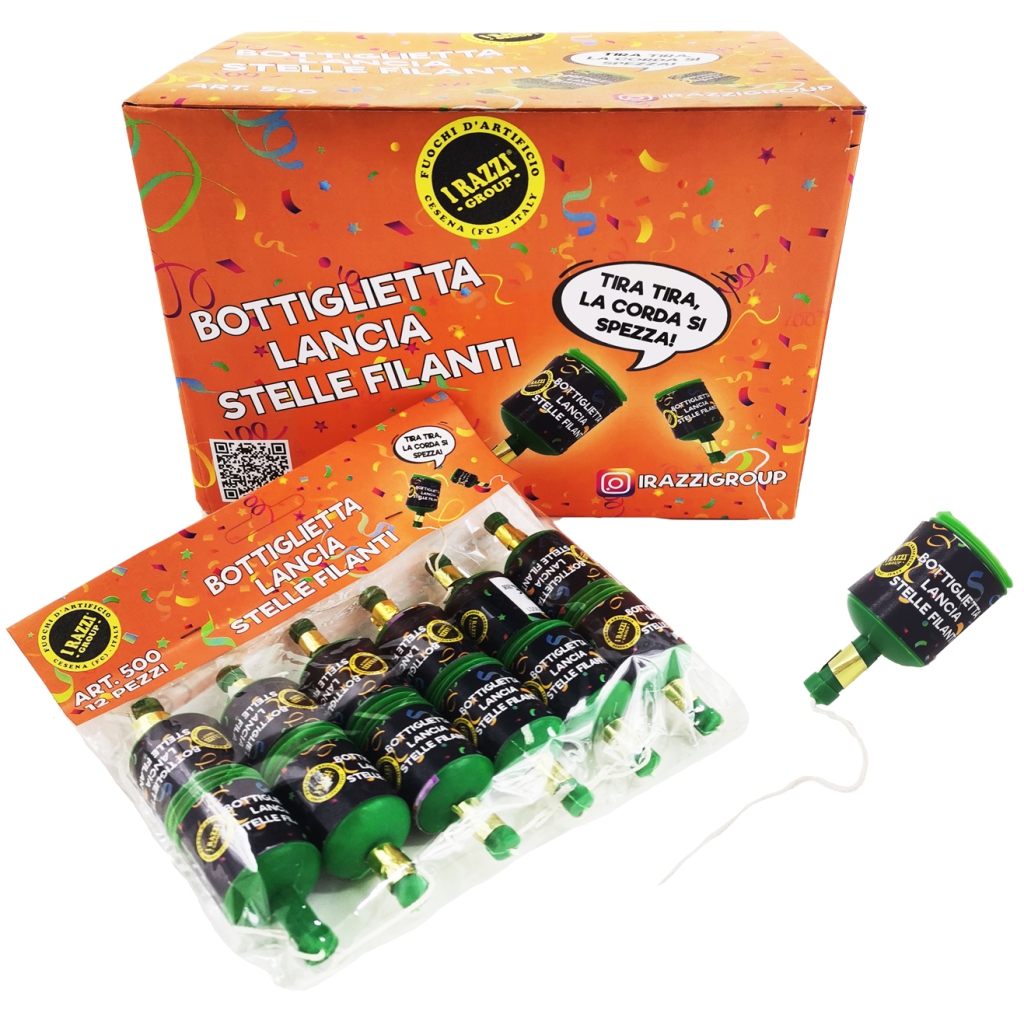 Bottigliette lancia stelle filanti. Effetto: stelle filanti.