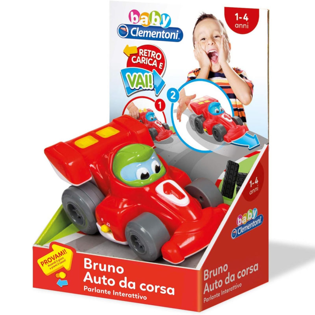 Una grintosa auto da corsa a retrocarica per sfrecciare verso il divertimento! Premendo la testa del pilota si attivano gli effetti sonori di una vera formula 1 e le luci lampeggiano davvero facendo divertire il bambino. Stimola la percezione visivo-uditiva dei più piccoli, la manualità e la comprensione della relazione causa-effetto. 12-48 mesi