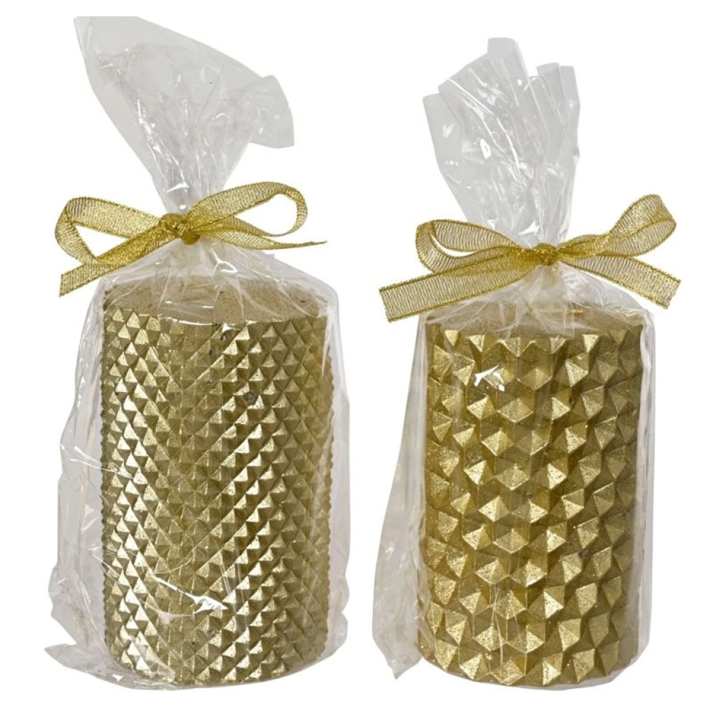CANDELA CILINDRO ORO D6,5H10CM SOGGETTI ASSORTITI