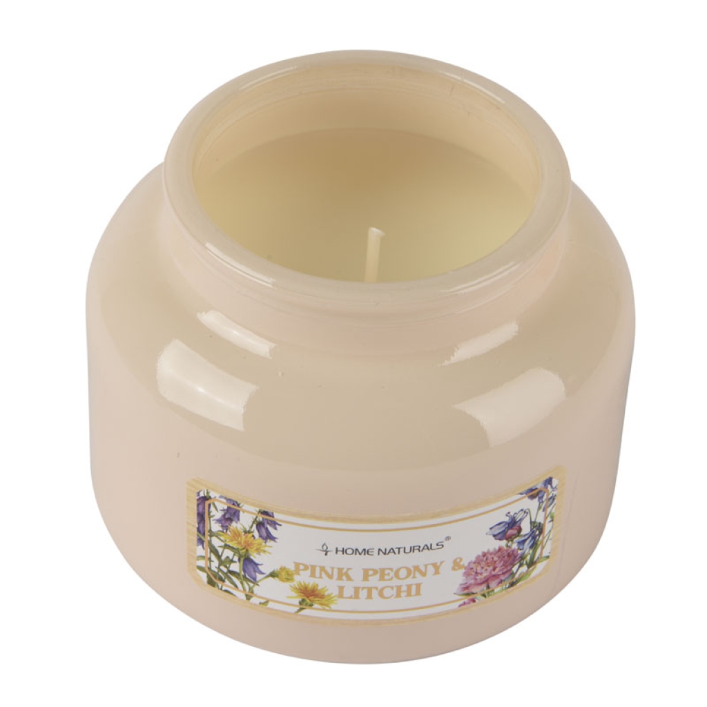 CANDELA GIARA VETRO 200GR PEONIA E LITCHI: vendita all’ingrosso a prezzi competitivi con consegna veloce by Bocchio srl