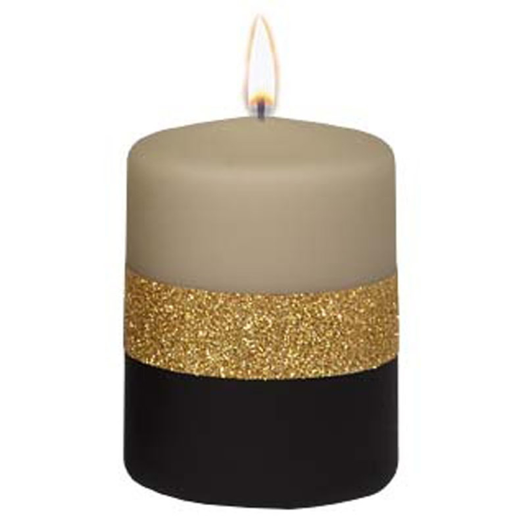 CANDELA MOCCOLO D7H10CM NERO ORO CAMMELLO