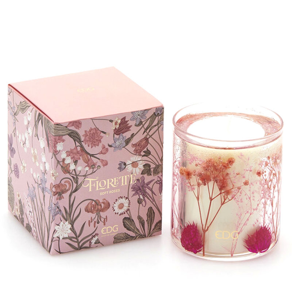 CANDELA VASO VETRO FIORI H9CM 170GR PROFUMATA