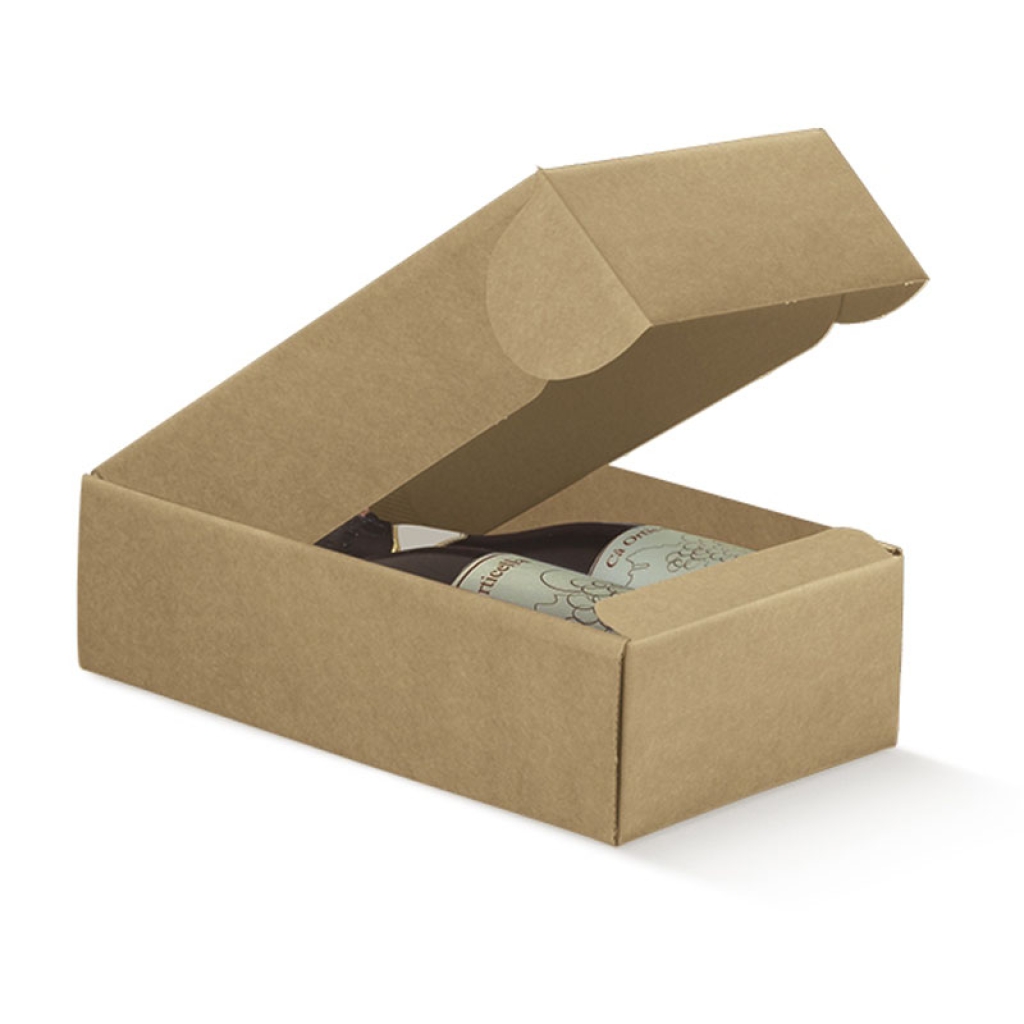 Confezione versatile progettata per contenere due bottiglie stese, modello Bordolese o Borgognotta, oppure una selezione di prodotti enogastronomici. Realizzata in cartoncino accoppiato di qualità, include un separatore per bottiglie, facilmente inseribile dopo il montaggio.