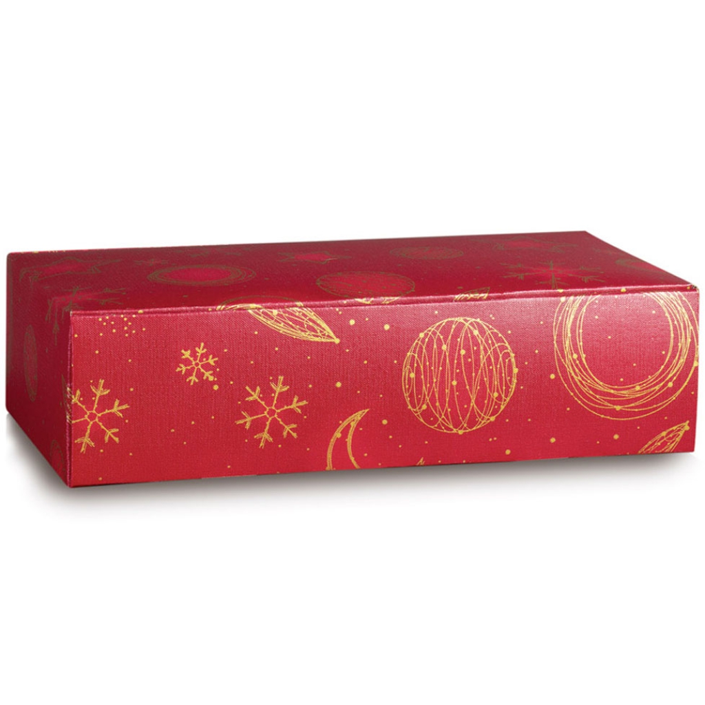 Confezione versatile progettata per contenere due bottiglie stese, modello Bordolese o Borgognotta, oppure una selezione di prodotti enogastronomici. Realizzata in cartoncino accoppiato di qualità, include un separatore per bottiglie, facilmente inseribile dopo il montaggio.