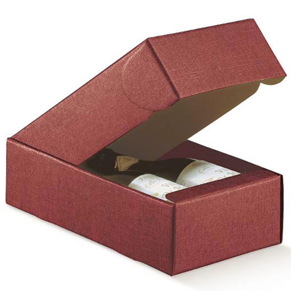 Confezione versatile progettata per contenere due bottiglie stese, modello Bordolese o Borgognotta, oppure una selezione di prodotti enogastronomici. Realizzata in cartoncino accoppiato di qualità, include un separatore per bottiglie, facilmente inseribile dopo il montaggio.
