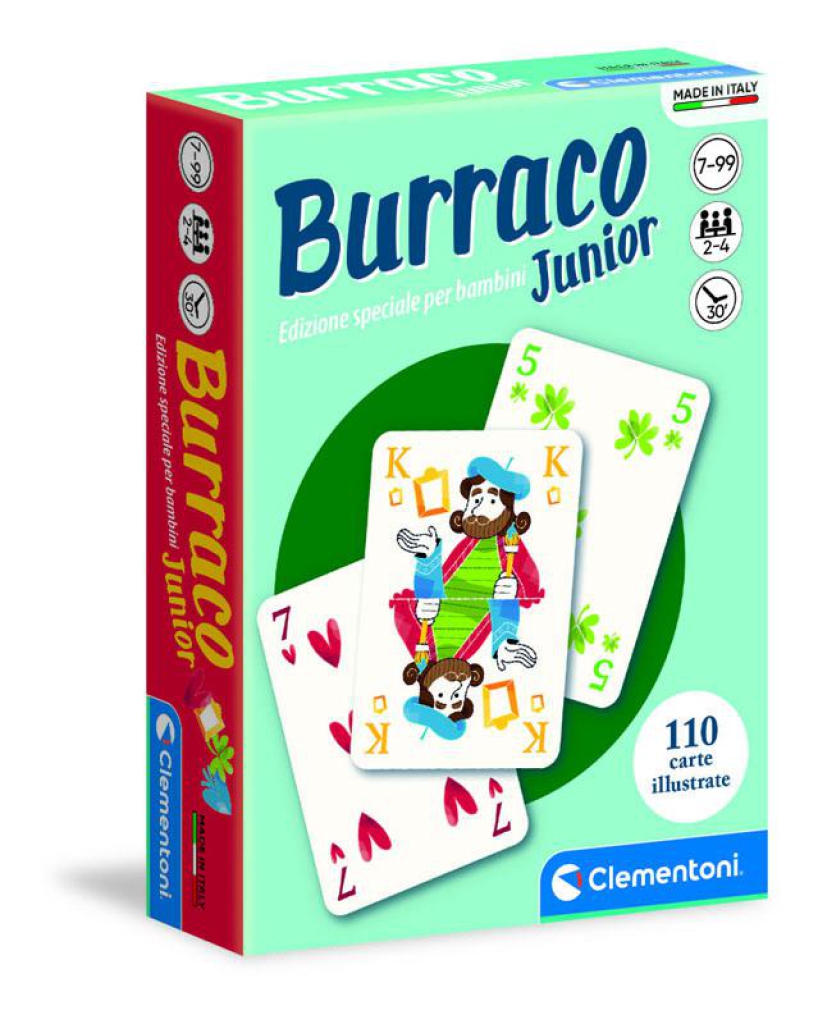 Il gioco del burraco che fa impazzire genitori, zii e nonni diventa ancora più divertente e alla portata di tutti! Contiene un mazzo di carte con illustrazioni realizzate ad hoc per i più piccoli e una dinamica di gioco semplificata. Un grande classico dei giochi di carte per divertirsi ovunque con amici e parenti! Made in Italy. Target età 7-99. Dimensioni scatola 11,2x15,6x3,2cm.