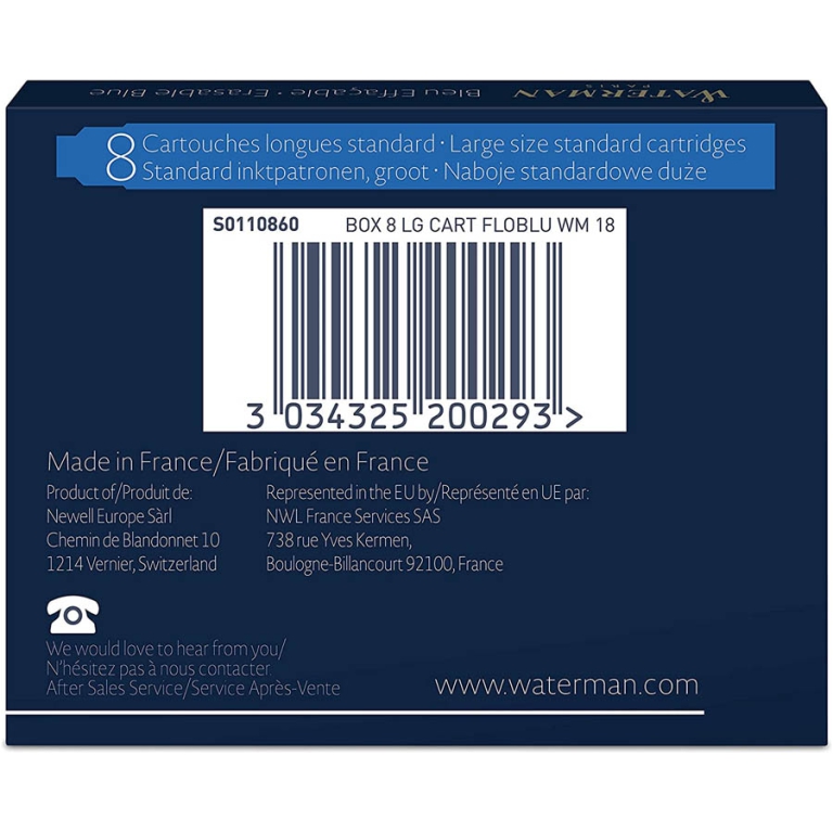 CARTUCCE WATERMAN 8PZ BLU MODELLO STANDARD INCHIOSTRO: vendita all’ingrosso a prezzi competitivi con consegna veloce by Bocchio srl