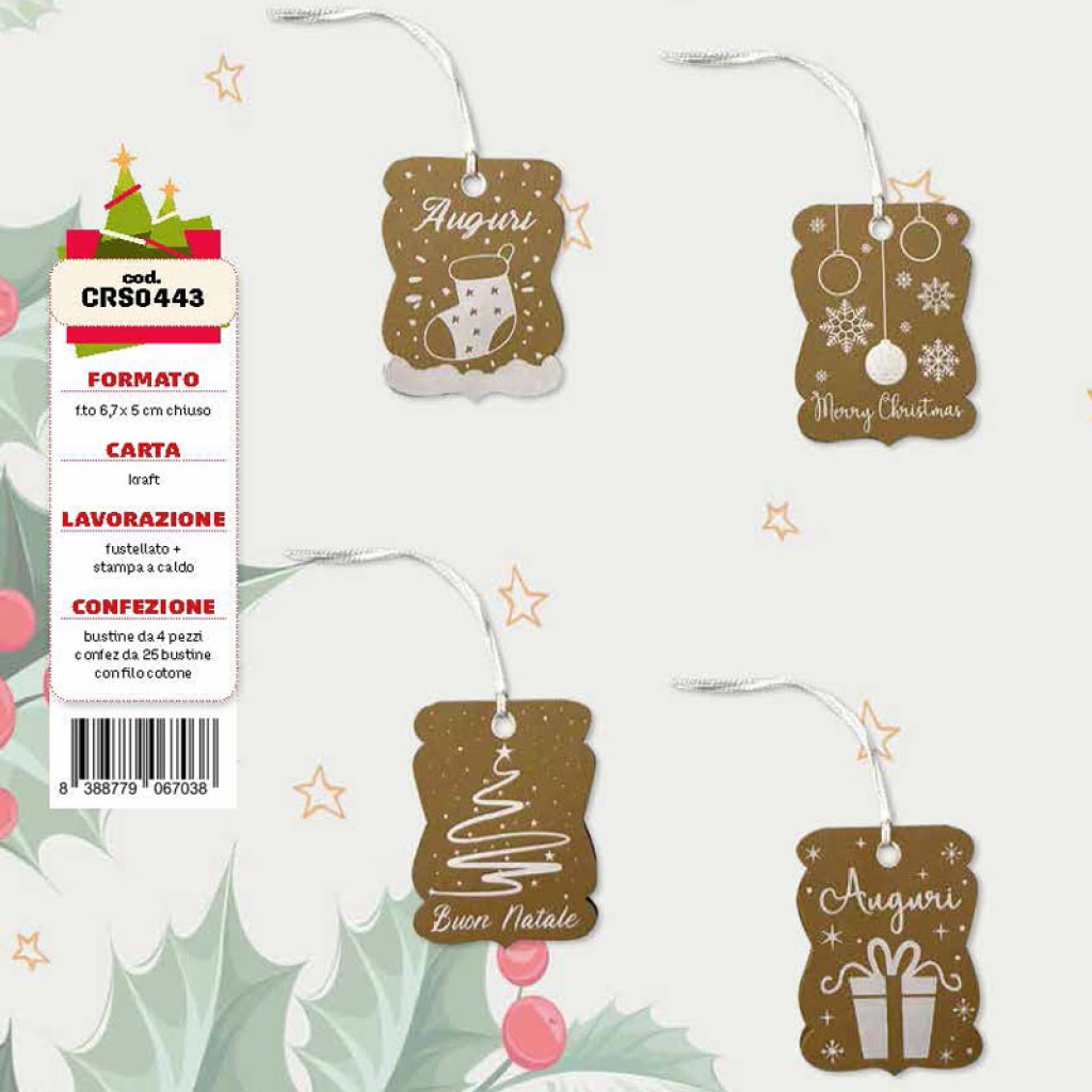 CHIUDIPACCO NATALE 25 BLISTER DA 4PZ 7X5CM KRAFT