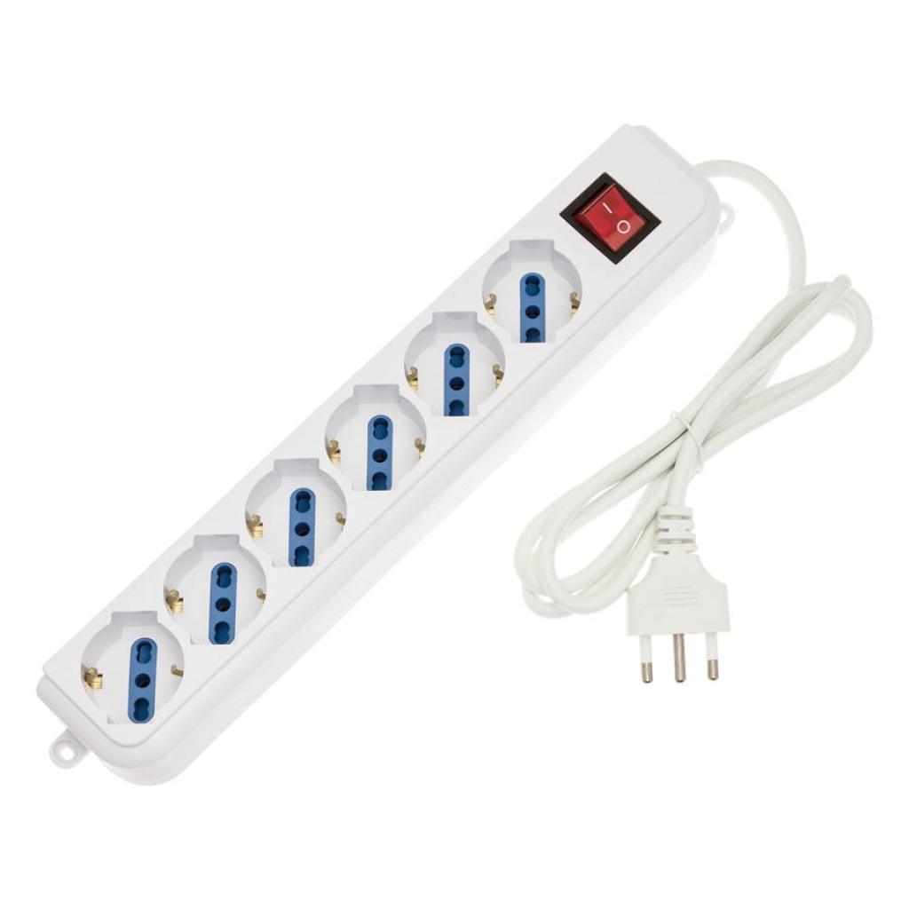 CIABATTA 6 POSTI SCHUKO BIANCA CON INTERRUTTORE
