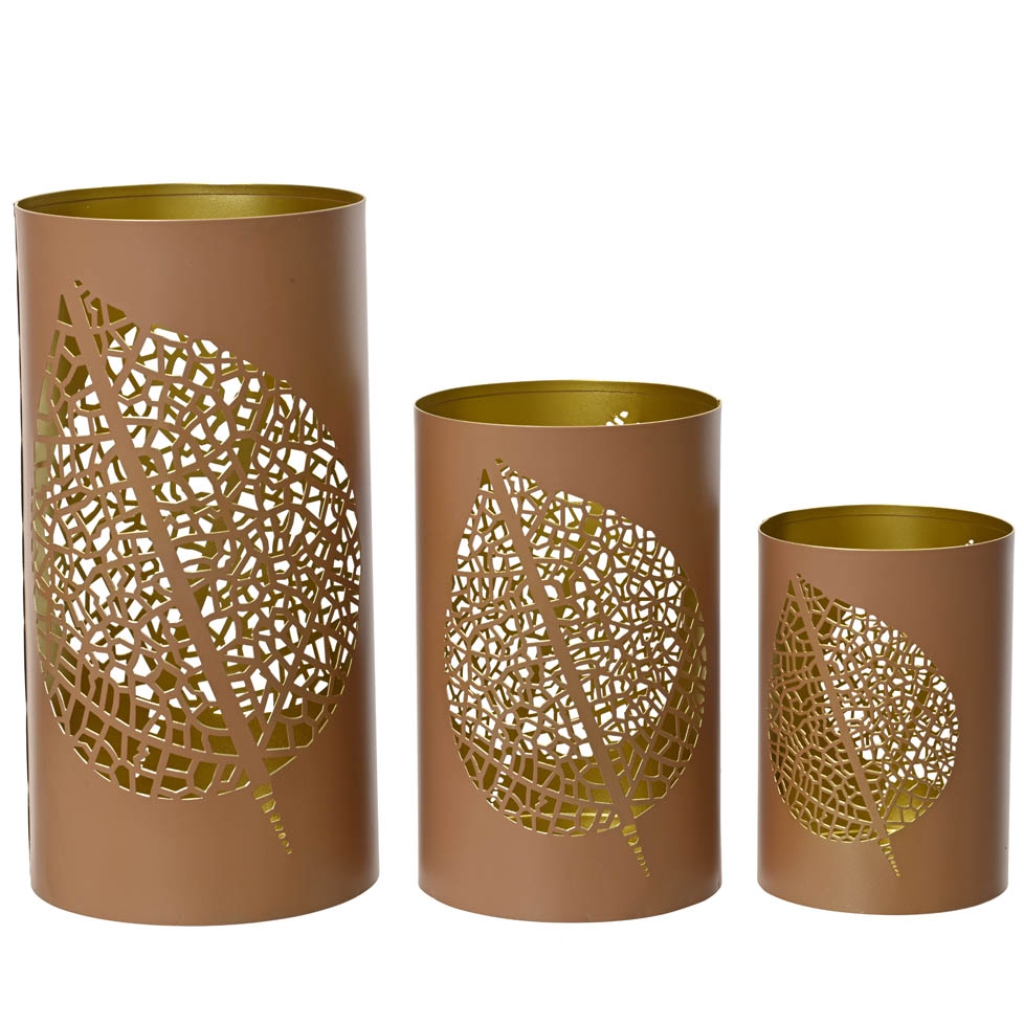 CILINDRO SET 3PZ METALLO DECORO FOGLIA 13,5H28CM
