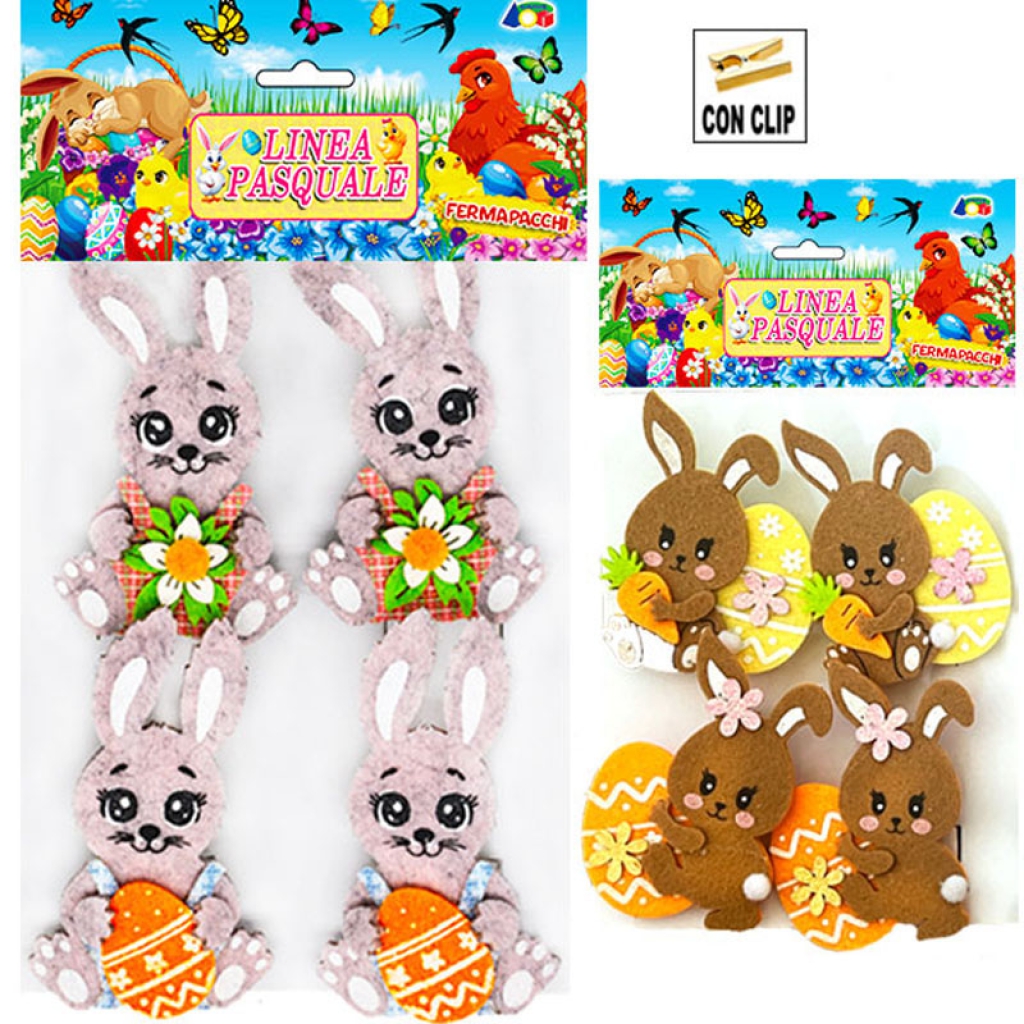 CONIGLIETTI FELTRO CON CLIP SET 4PZ SOGGETTI ASSORTITI: vendita all’ingrosso a prezzi competitivi con consegna veloce by Bocchio srl