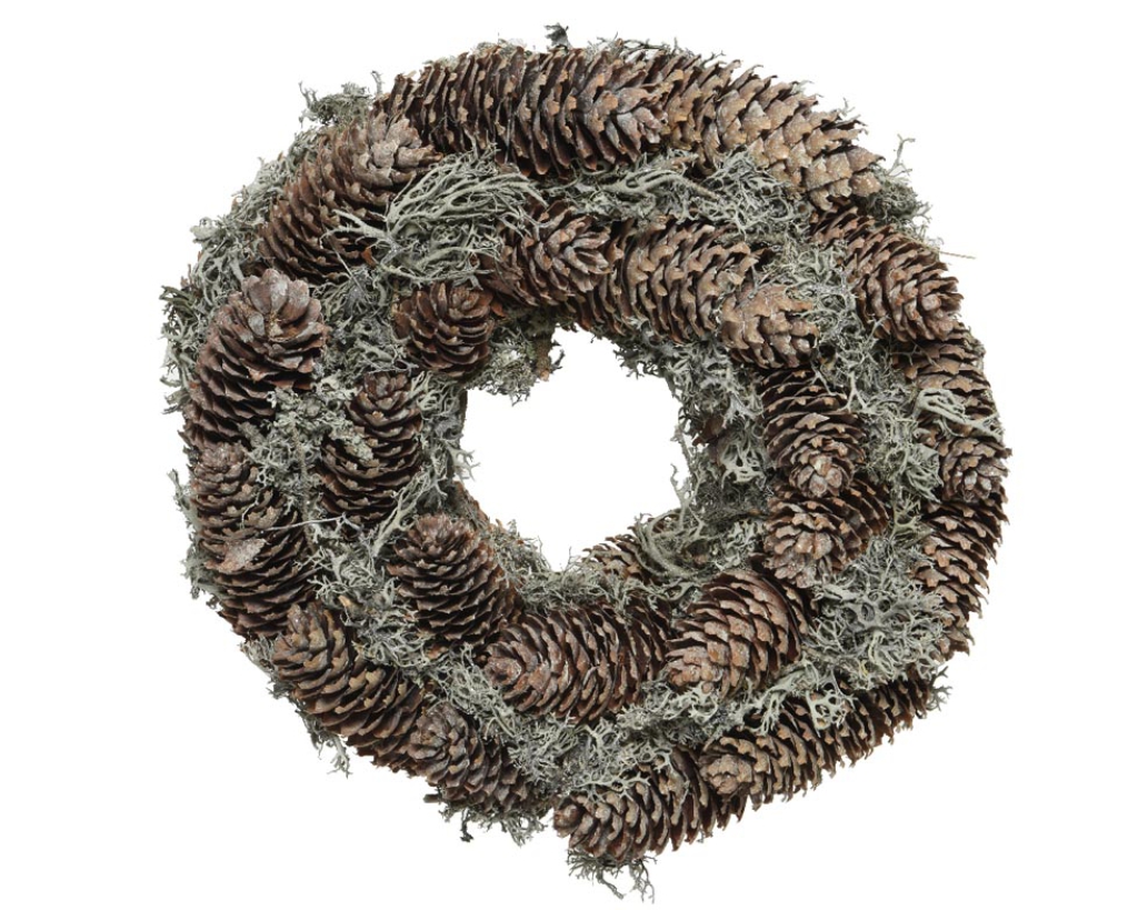 CORONA D35CM NATURALE CON PIGNE GLITTER