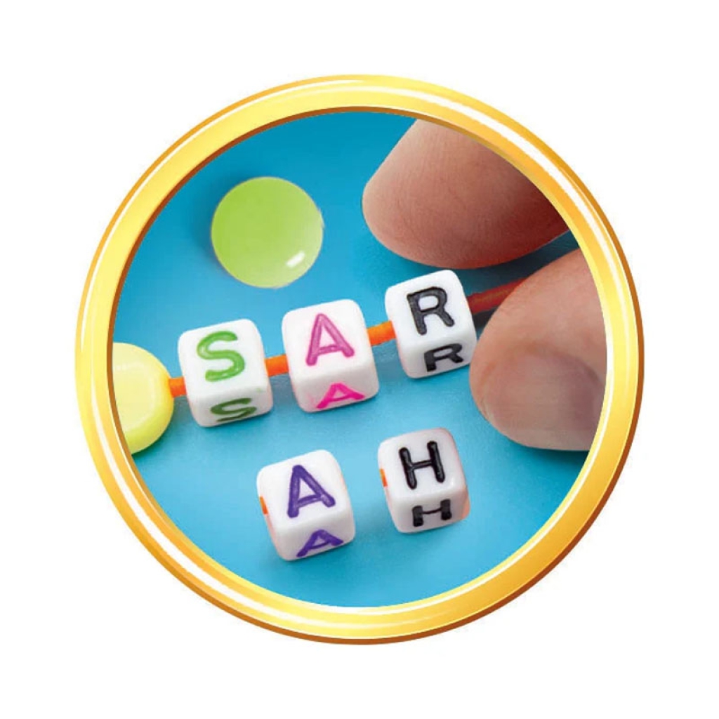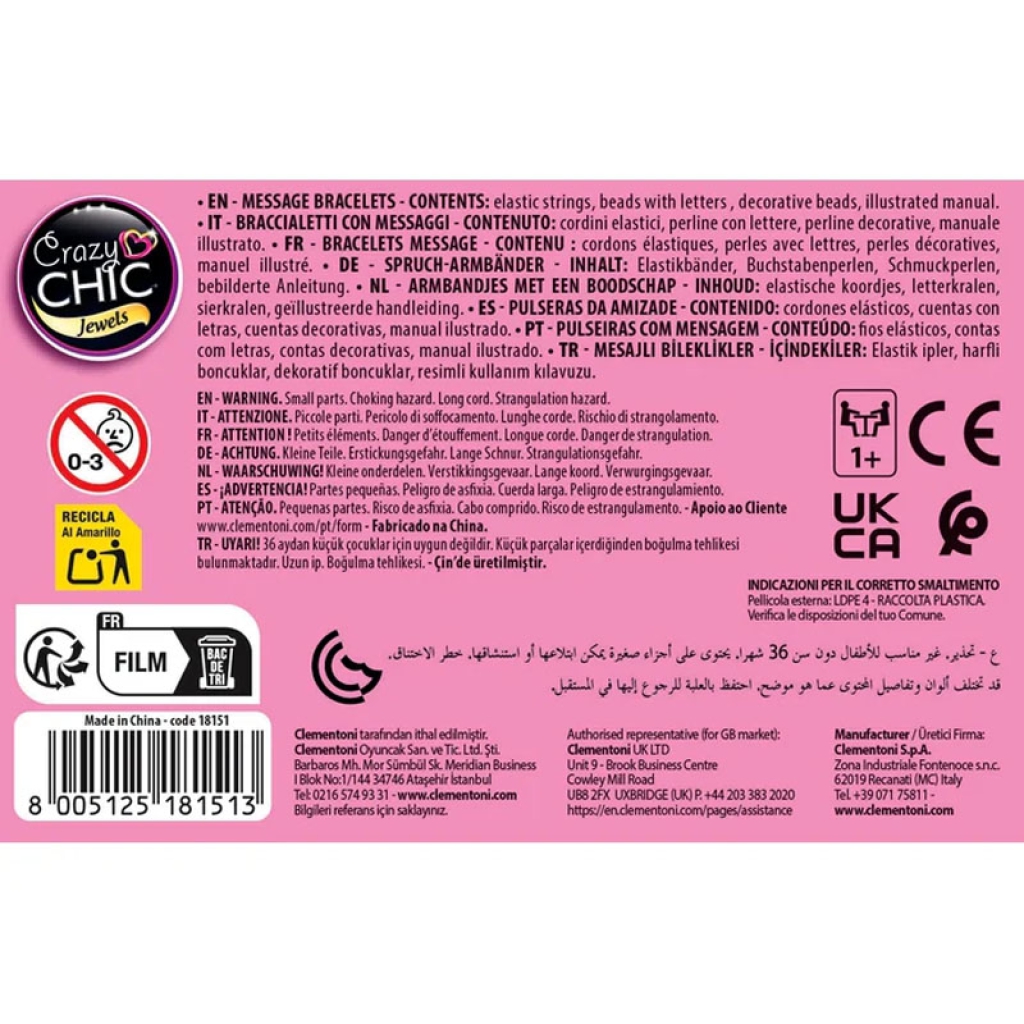 Una borsetta dal design unico che contiene un kit originale per realizzare tanti braccialetti con messaggi! La borsetta di colore rosa contiene vari componenti colorati per creare braccialetti trendy, da condividere con le tue amiche! Perline colorate,lettere e cordini elastici. Consigliato a partire dai 6 +