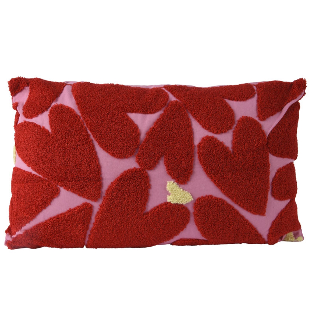 CUSCINO COTONE 30X50H2,5CM CUORI ROSSI