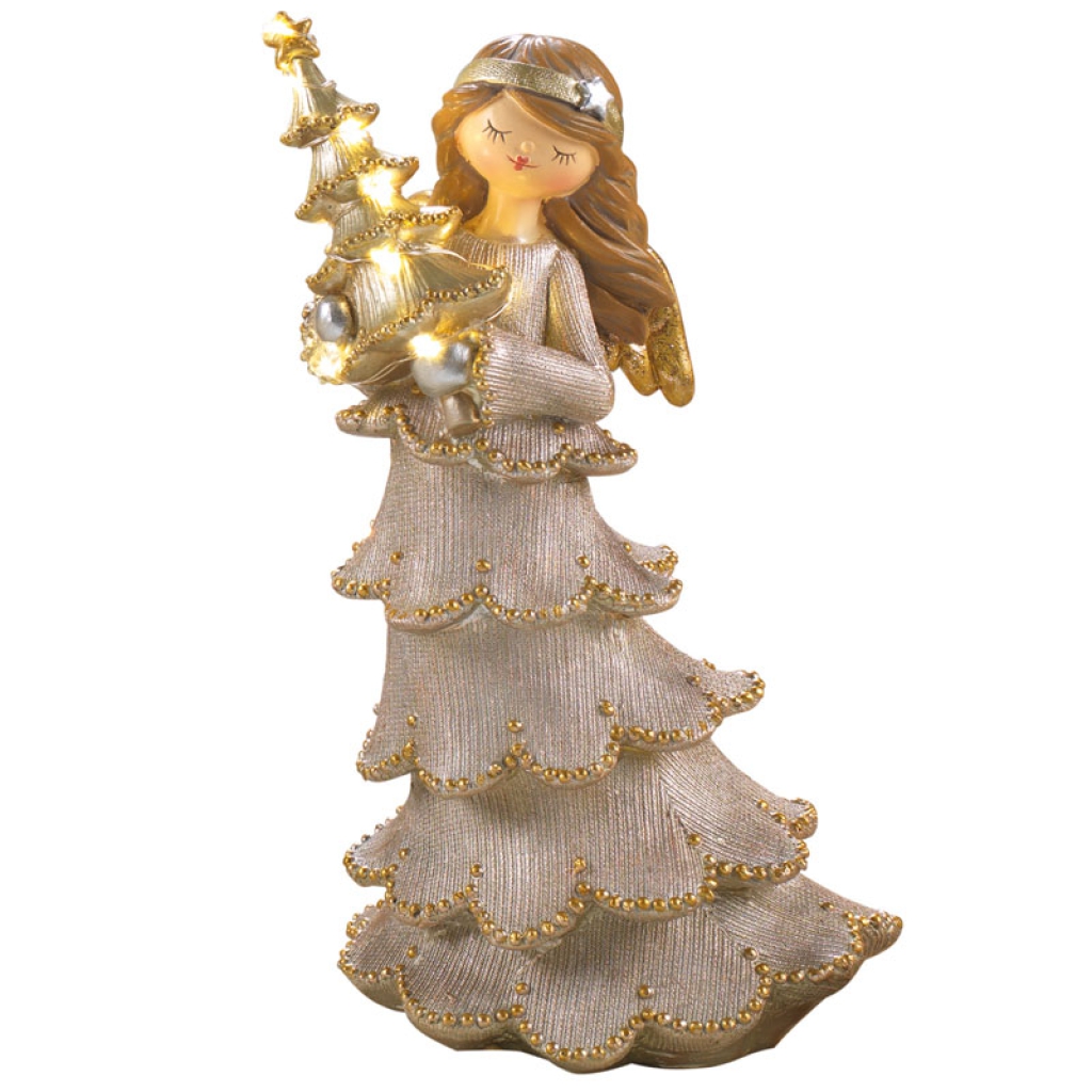 DECORO ANGELO CON ALBERO LED DETTAGLI PERLINE