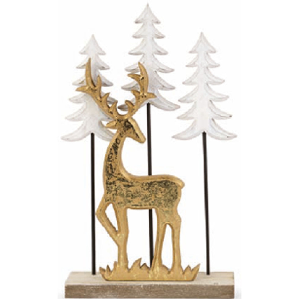 DECORO ORO CERVO E ALBERI H30CM