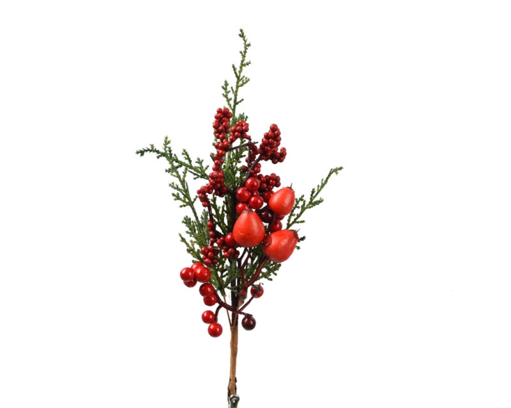 DECORO RAMETTI PINO CON BACCHE H25CM CON CLIP
