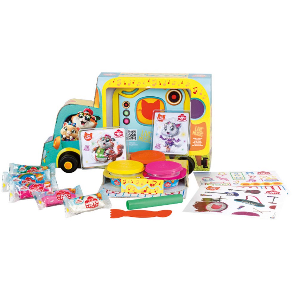 Tutti al concerto dei Buffycats. La serie 2 dei 44 Gatti è on air con record di ascolti e Didò dedica la novità a licenza alla Buffymobile. La confezione a forma della famosa BuffyMobile! Con ruote vere! Si apre e si trasforma nel palco! I barattoli Didò sono le postazioni e ci sono 550 g di Didò, 4 formine, strumenti musicali in cartoncino e sticker per dare vita al gioco. QR code unboxing sui pack e in più, tramite QR code all interno si accede a un video concerto dei Buffycats in esclusiva per Didò.