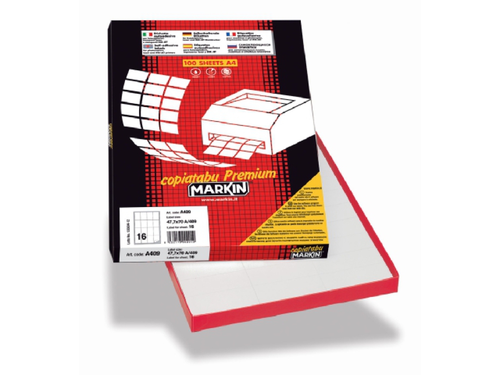Scatola 100 fogli etichette. In scatola da 100 fogli formato A4. Adesivo permanente universale, acrilico a base dacqua. Ottima resistenza al calore. Buona adesione su cartoni e superfici non-polar. Buona adesione anche alle basse temperature.