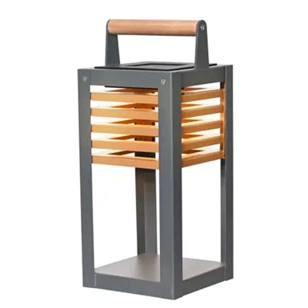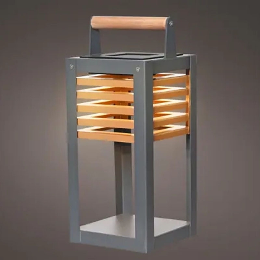 LANTERNA ALLUMINIO H34CM DECORO LEGNO