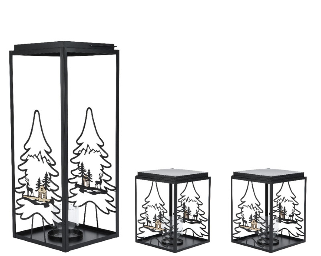 LANTERNA METALLO SET 3PZ DECORO ALBERO: vendita all’ingrosso a prezzi competitivi con consegna veloce by Bocchio srl