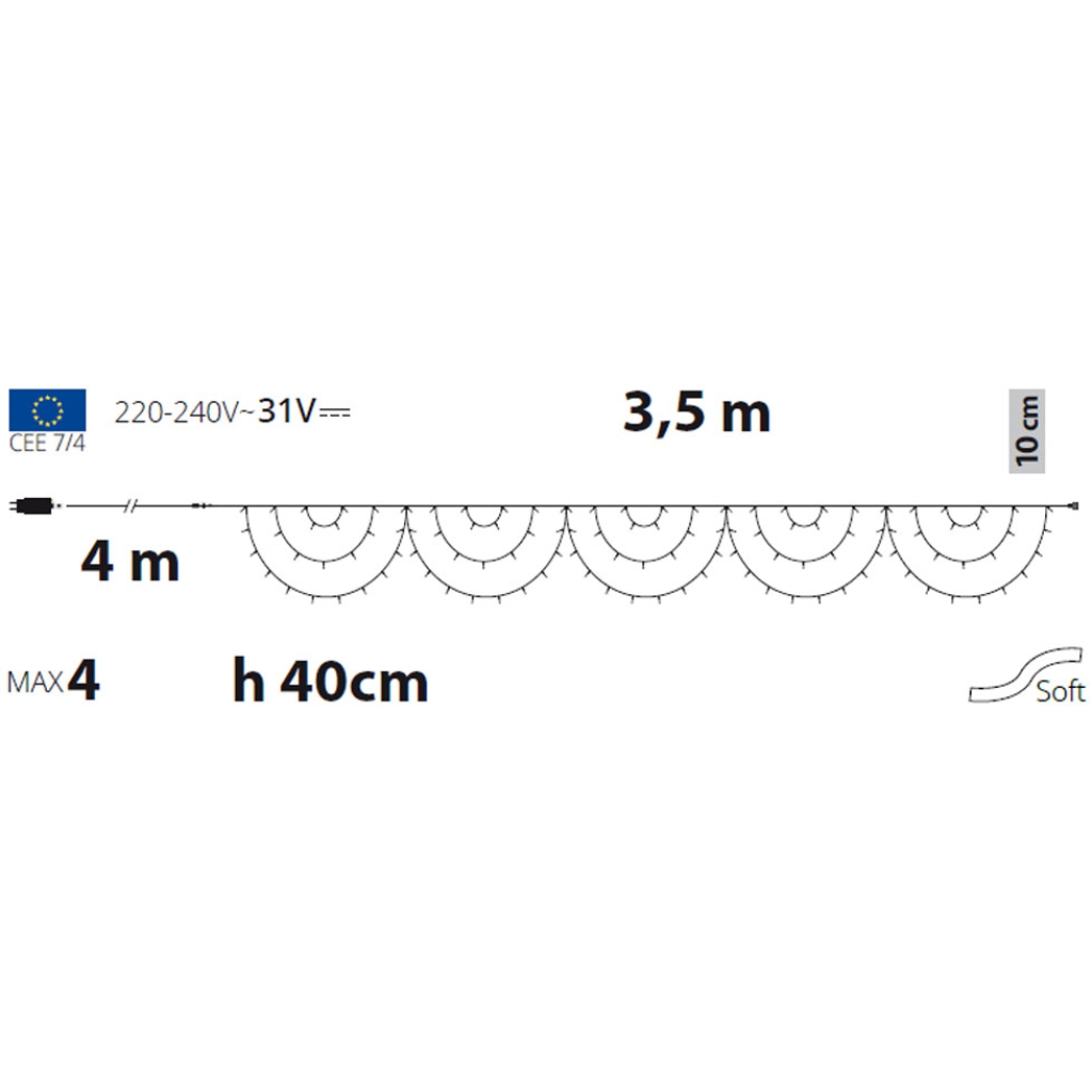 Garland Light BLP 115 LED BIANCO CALDO 5mm Reflex, Prolungabile (Max 4 pz / 460 led / 14m), Memory Controller Luce Fissa + 7 giochi luce con Timer 8 ore On 16 ore Off disinseribile tramite Pulsante Luminoso integrato nel Trasformatore SELV di Sicurezza, Smart Connect compatibile, IP44 uso Esterno e Interno, Cavo Soft Bianco, Cavo di Alimentazione 4m, Dimensioni 4m+350xH40cm, Scatola lusso color (XKC Art. BLP 115-PC W L350).