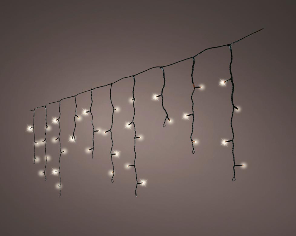 Crea un atmosfera suggestiva con la tenda luminosa LED Kaemingk da esterno. Con 50 fili e 175 LED bianco caldo da 3 mm, offre 8 funzioni di illuminazione twinkle con timer e centralina integrata nel trasformatore. Il cavo nero e il grado di protezione IP44 garantiscono resistenza e sicurezza, rendendola perfetta per decorare facciate, balconi, terrazze e giardini durante le festività o eventi speciali. Caratteristiche tecniche: Numero di fili: 50 Numero LED: 175 (bianco caldo) Distanza tra LED: 10 cm Distanza tra fili: 15 cm Lunghezza filo più lungo: 50 cm Cavo di alimentazione: 5 m Dimensione LED: 3 mm Funzioni: 8 effetti twinkle con timer Centralina: integrata nel trasformatore Potenza: 31V-3.6W Classe energetica: G Certificazioni: CE, EMC, EN62471, LVD, RoHS Grado di protezione: IP44 (uso esterno) Spina: EU Peso: 0,5 kg Colore cavo: nero LED non sostituibili Confezione: colourbox 7.1x19x16.5 cm (cartone).