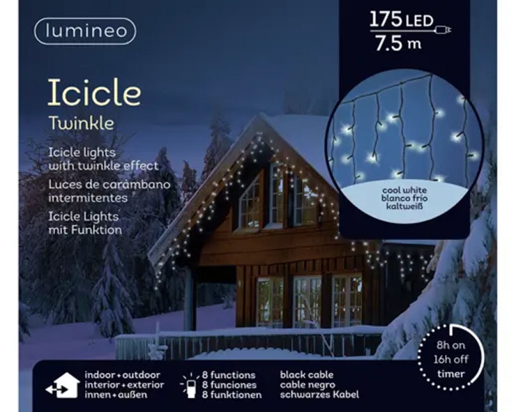 Decora i tuoi spazi con la tenda luminosa LED da esterno composta da 50 fili e 175 LED bianco freddo da 3 mm. Dotata di 8 funzioni twinkle con timer e centralina integrata, garantisce un effetto scintillante elegante e luminoso. Il cavo nero e il grado di protezione IP44 la rendono perfetta per l uso esterno, ideale per facciate, balconi, terrazze e giardini durante il Natale o eventi speciali. Caratteristiche tecniche: Numero di fili: 50 Numero LED: 175 (bianco freddo) Dimensione LED: 3 mm Distanza tra LED: 10 cm Distanza tra fili: 15 cm Lunghezza filo più lungo: 50 cm Cavo di alimentazione: 5 m (nero) Alimentazione: trasformatore 31V-3.6W Funzioni: 8 giochi di luce twinkle con timer Centralina: integrata nel trasformatore Classe energetica: G Certificazioni: CE, EMC, EN62471, LVD, RoHS Grado di protezione: IP44 (uso esterno) Spina: EU Peso: 0,5 kg LED non sostituibili Confezione: colourbox 7.1x19x16.5 cm (cartone).