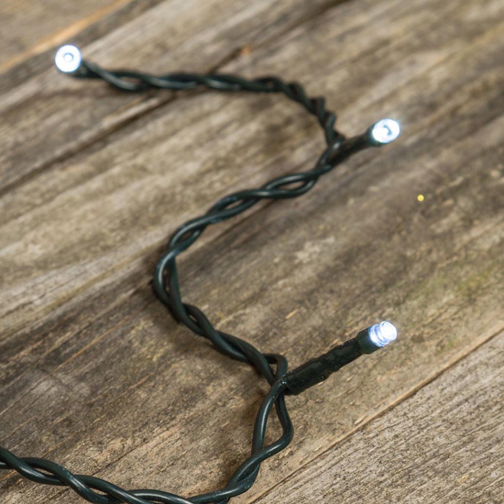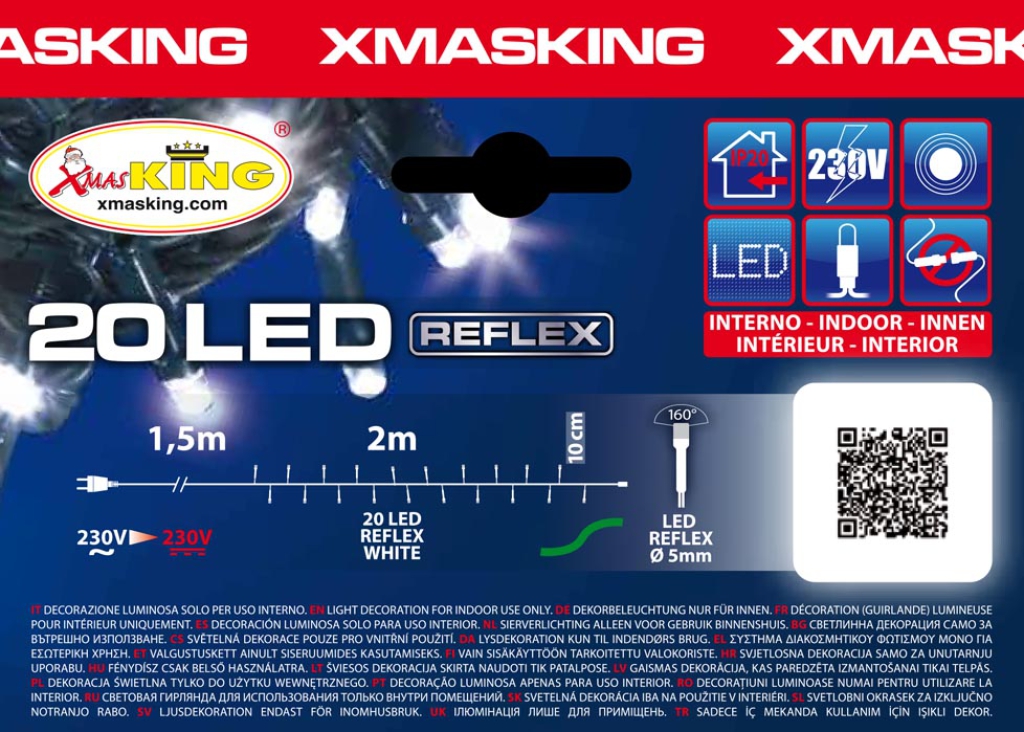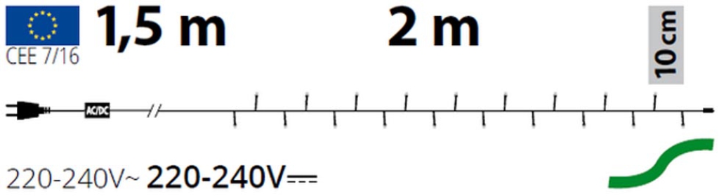 Catena lineare MB 20 LED BIANCO 5mm Reflex, Luce Fissa, 230V, uso Interno, Cavo Verde, Dimensioni 1,5+2m, Sacchetto con Cartoncino color appendibile.