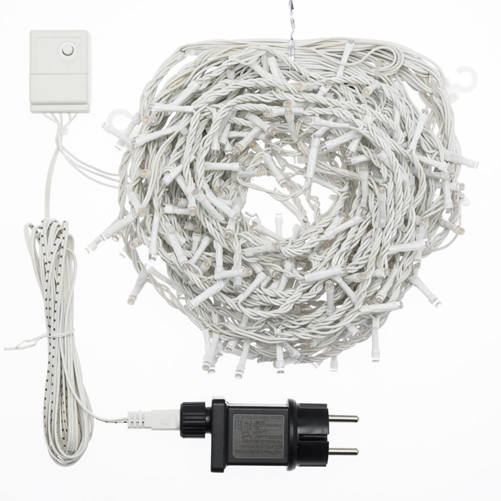Snow Light Nevicata 360xH80cm 288 LED BIANCO CALDO 5mm, Memory Controller Luce Fissa + Effetto Nevicata 4 velocità (3 canali), Trasformatore SELV di Sicurezza, IP44 uso Esterno e Interno, Cavo Soft Bianco, Cavo di Alimentazione 4m, Dimensioni 4+360xH80cm