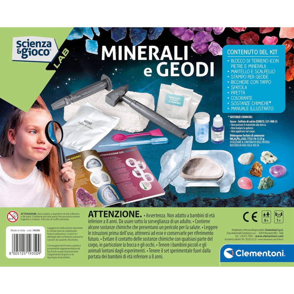 Un laboratorio scientifico completo per i piccoli esploratori della mineralogia, con strumenti e materiali per scoprire geodi e minerali attraverso attività pratiche e coinvolgenti. IMPARARE GIOCANDO: il kit include strumenti come martello e scalpello per scavare, e sostanze chimiche per esperimenti divertenti e sicuri, permettendo di imparare giocando e osservando i processi geologici. COME GIOCARE: i bambini scavano il mattone per estrarre pietre e minerali, utilizzano il gesso per creare un vero geode e si divertono a osservare le reazioni chimiche, scoprendo il mondo della geologia in modo pratico e istruttivo. COSA CONTIENE: gioco Made in Italy per bambine e bambini da 8 anni in su, con blocco di terreno da scavare, martello e scalpello, pinzette, lente di ingrandimento, geodi e minerali, sostanze chimiche per esperimenti e manuale illustrato. CLEMENTONI SCIENZA E GIOCO LAB: giochi per piccoli grandi scienziati, per stimolare curiosità e sete di conoscenza in modo pratico e semplice, con kit su temi classici e nuovi, come la cosmesi, e fenomeni naturali che affascinano sia adulti che bambini.