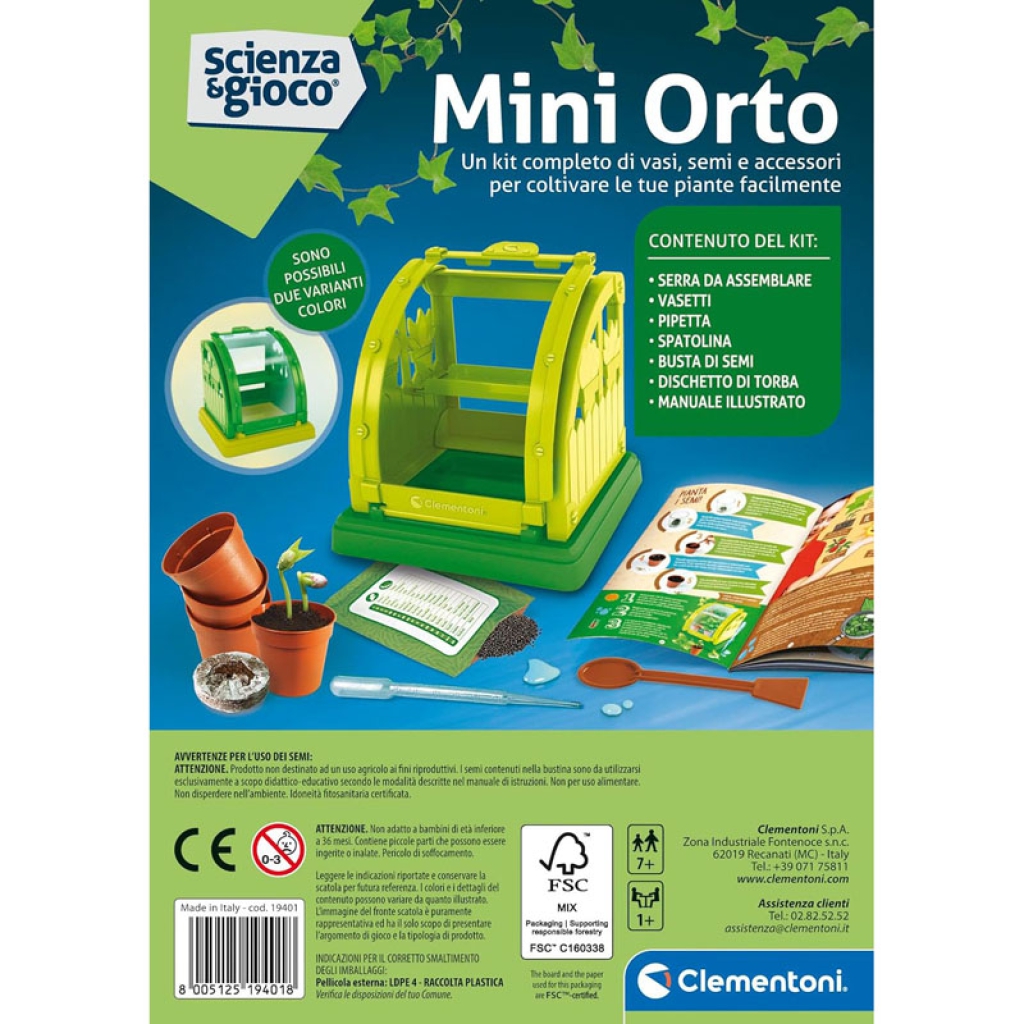 Un mini orto da assemblare, con piccoli vasetti, torba, semi a crescita rapida e accessori. Un kit di botanica essenziale ma con tutto l occorrente per iniziare subito a giocare. La mini serra è dotata di apertura frontale con sportellino per poter curare le coltivazioni con facilità. Materiali resistenti e di qualità, per scoprire il mondo della botanica in maniera semplice e sicura. Made in Italy. Ideato, progettato e sviluppato in Italia.