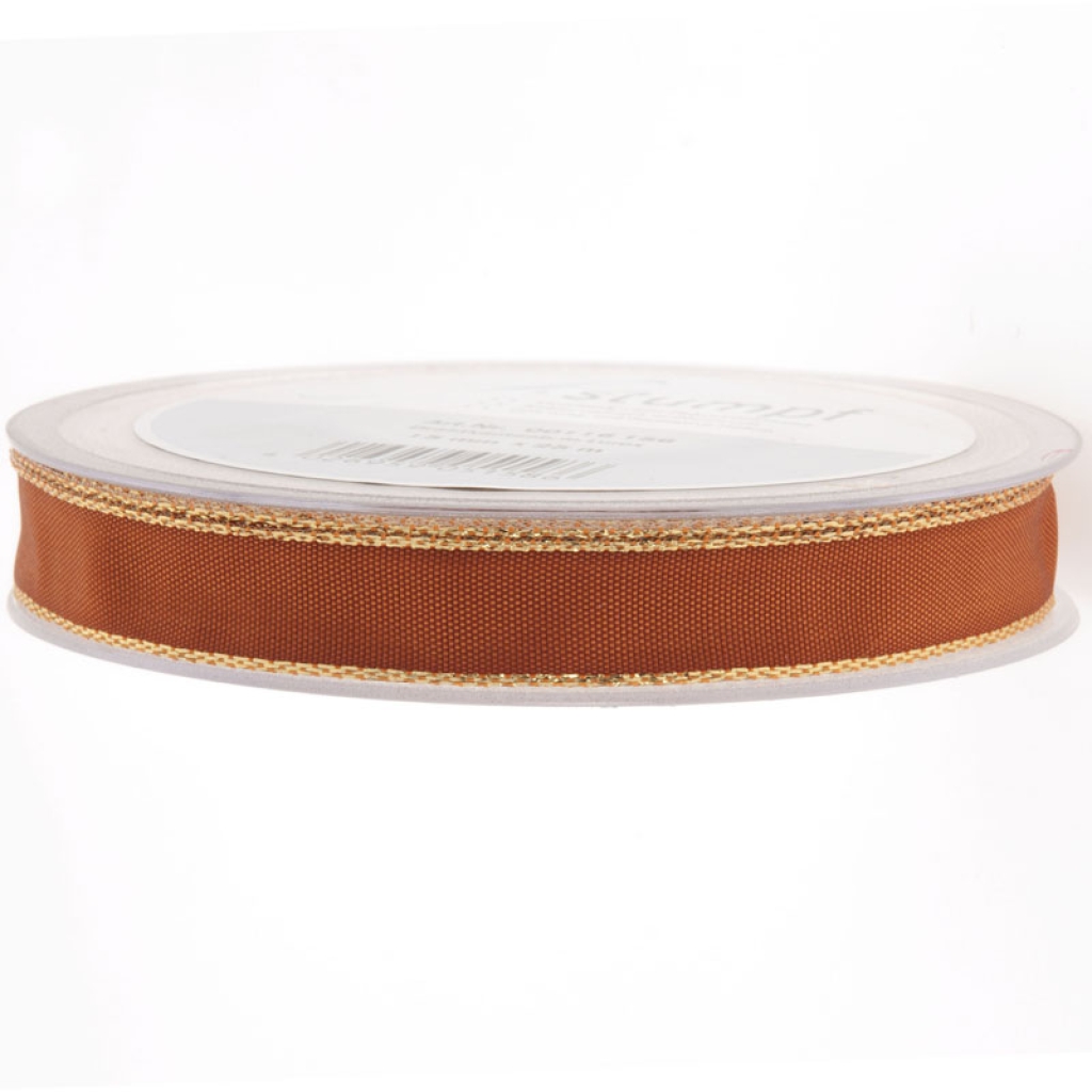 NASTRO TESSUTO 15MMX25MT COGNAC BORDATO ORO